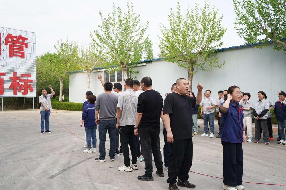 本次跳繩比賽共五支隊(duì)伍,分別是南樓辦公室、北樓辦公室、智能生產(chǎn)部、直管生產(chǎn)部、盤(pán)管生產(chǎn)部。戰(zhàn)前宣誓環(huán)節(jié),各隊(duì)隊(duì)長(zhǎng)振臂高呼,隊(duì)員們聲浪如潮,整個(gè)賽場(chǎng)沸騰著宏泰人永不言敗的熱血!