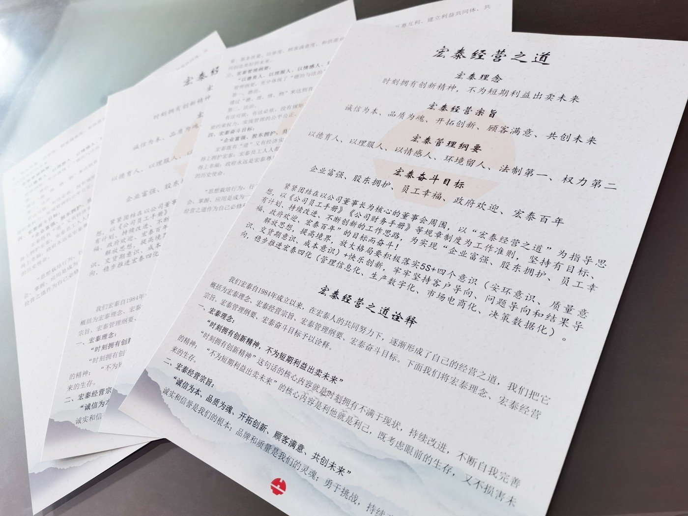 奮進(jìn)的道路上,李福鵬一直秉承“宏泰經(jīng)營之道”的指導(dǎo)思想。堅持“時刻擁有創(chuàng)新精神,不為短期利益出賣未來”的宏泰理念,本著利己不損人,堅持利他才能利己,合作才能雙贏的管理思維,積極落實5S + 四個意識 + 快樂創(chuàng)新;牢牢堅持客戶導(dǎo)向、問題導(dǎo)向和結(jié)果導(dǎo)向;重點聚焦法制第一和精細(xì)化思維工作方式,圍繞宏泰經(jīng)營宗旨和管理綱要的中心思想,逐漸使宏泰人形成人心思進(jìn)、團(tuán)結(jié)和諧、共促發(fā)展的良好氛圍,在穩(wěn)步推進(jìn)宏泰四化的基礎(chǔ)上,堅持穩(wěn)走四條道路:堅持宏泰經(jīng)營之道厚德載物,走員工幸福的道路;堅持把合規(guī)放首位,走穩(wěn)健經(jīng)營的道路;堅持管理信息化和生產(chǎn)數(shù)字化直至智能化的兩化深度融合,走分工專業(yè)化道路;堅持KPI考核,走績效管理的道路。